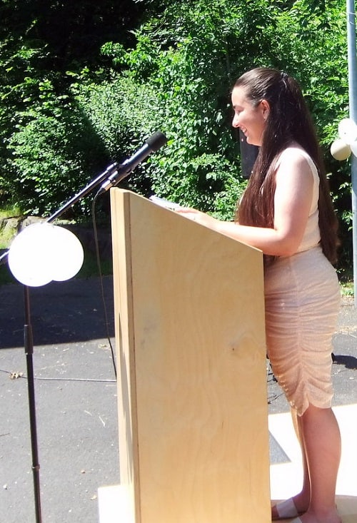 Eine beachtliche Anzahl von Schüler*innen bekamen in diesem Jahrgang besonders gute Abschlüsse, so auch Fatma Yildirim, beste Schülerin und stellvertretende Sprecherin des 10er Jahrgangs. Sie moderierte die Feier. Fatma wird ihr Abitur an der Heinrich-Böll-Gesamtschule machen wird.